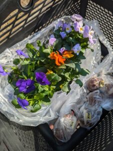 管理事務所で花の苗とチュ~リップの球根